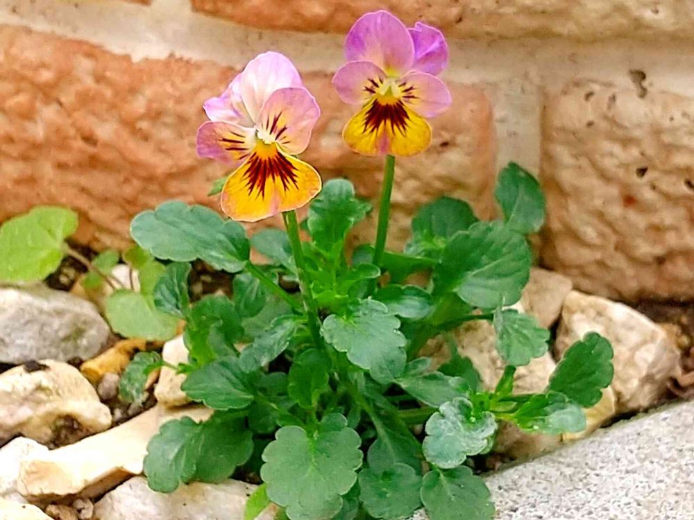 砂利の間からひょっこりビオラ、かわいい〜💕