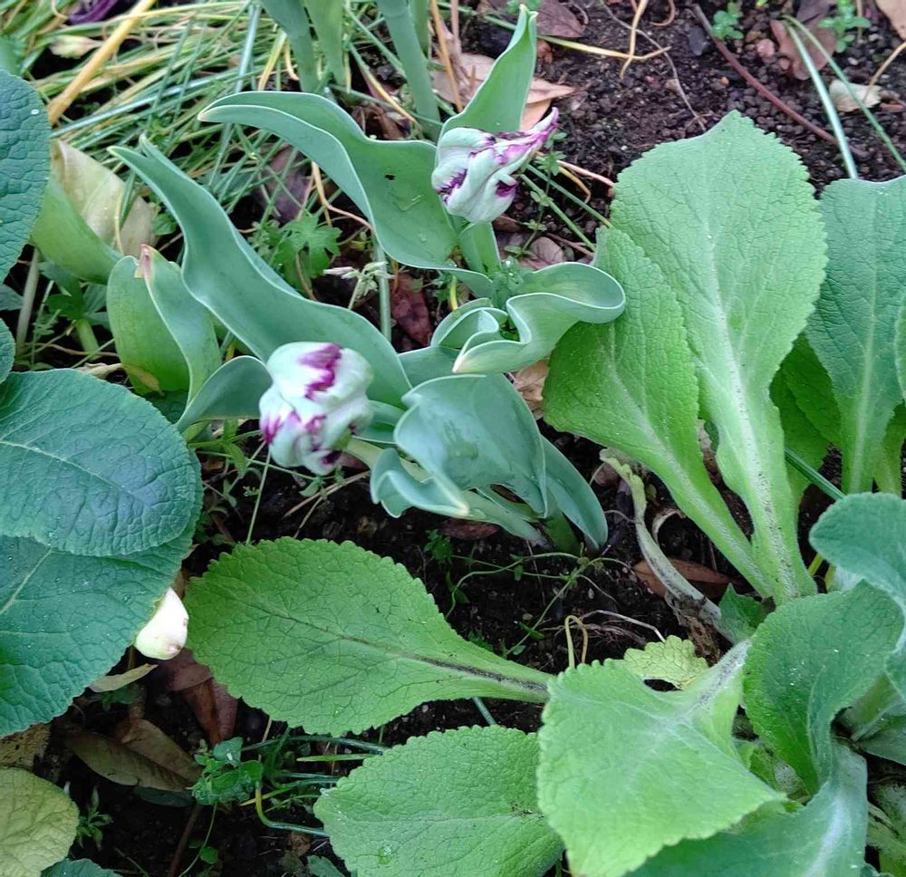少し遅れてくしゃくしゃの蕾が出てきて、チカラが足りないのか、開くに開けない