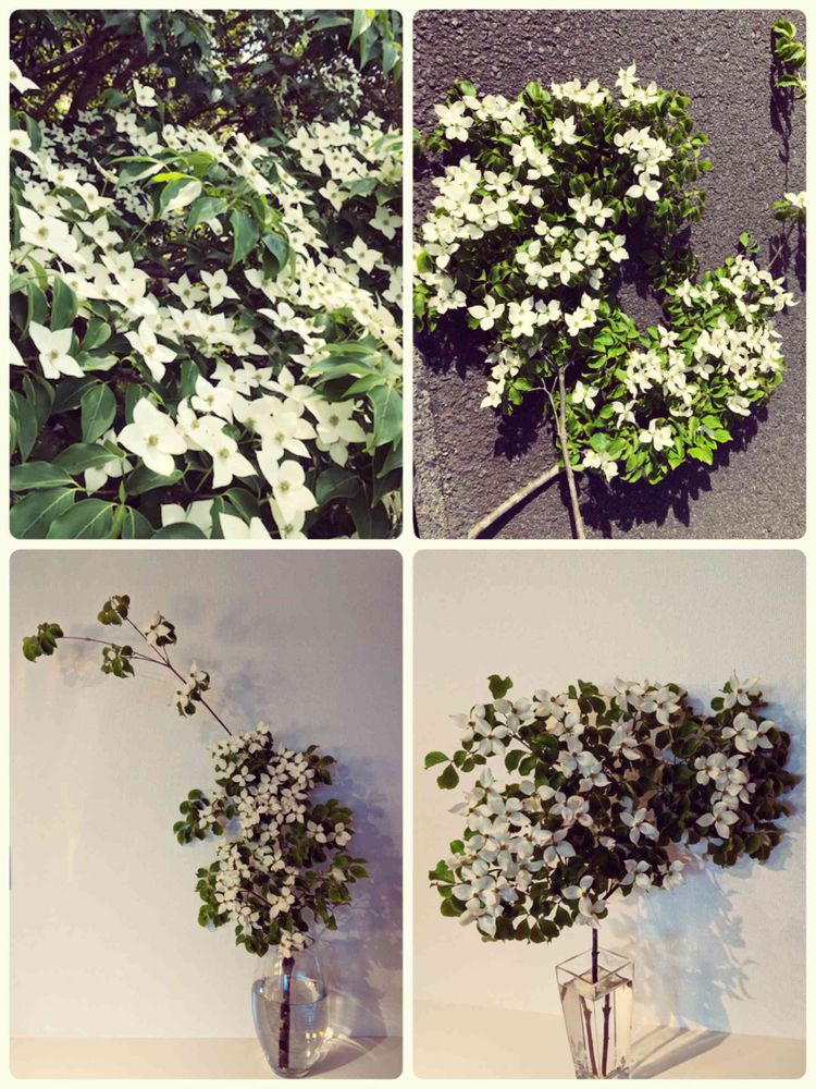 初夏を感じるヤマボウシの色合いが部屋を明るくしてくれています。