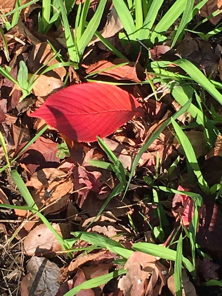 桜ですか。そう言われれば、この落ち葉の近くにあります。花の時期はとても美しいのですが、散ったあと葉っぱがこんな風に綺麗な赤になるんですね。お恥ずかしいことに長いこと生きて来て、知りませんでした。