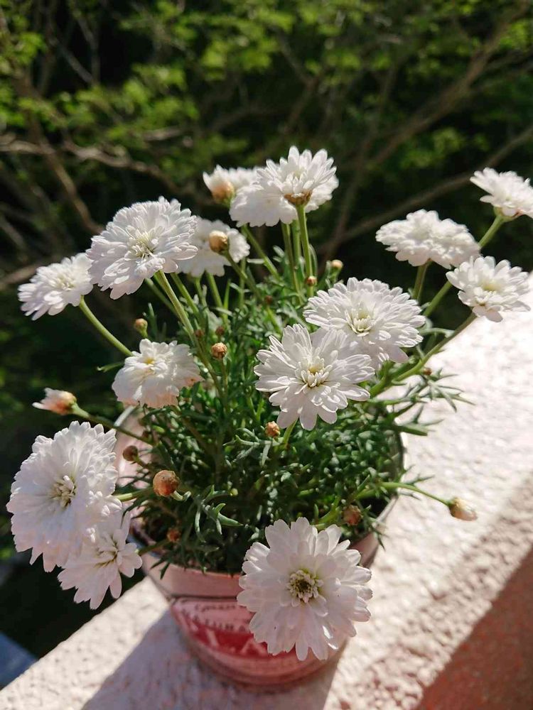 蕾が開花し違う蕾も付き、今日もマーガレット元気いっぱいです🌼😊