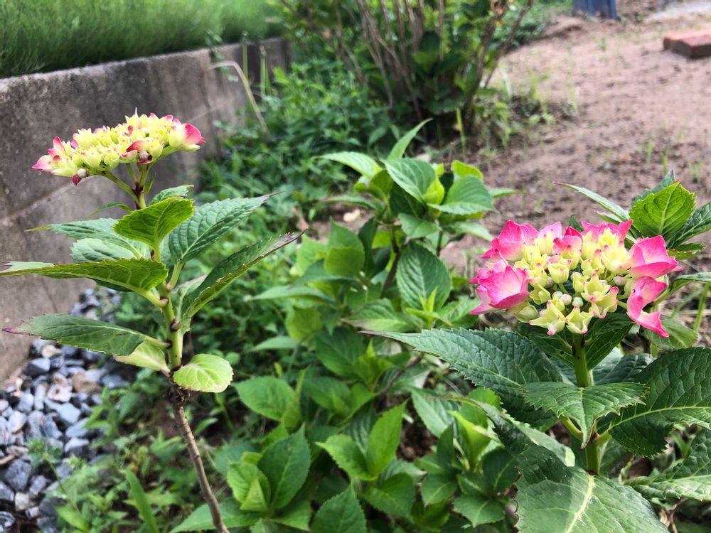 一緒に移植した他の2本の紫陽花は日当たりが良すぎたのか葉焼けがちょっと心配💦