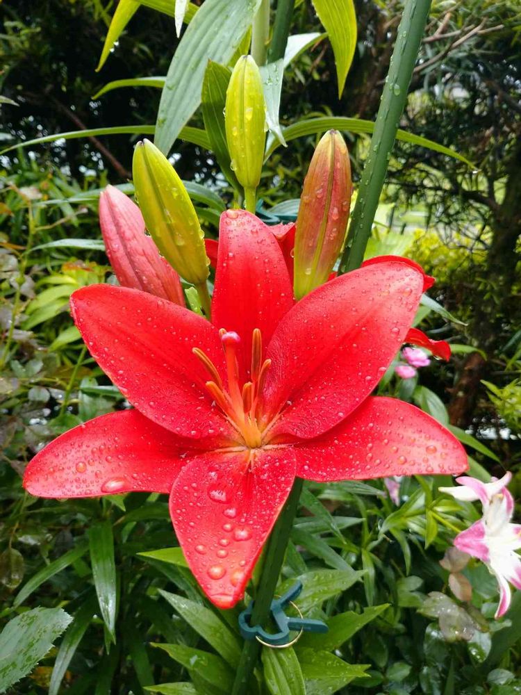 とても色鮮やかに咲いていますが、雨で花びらの傷むのが心配ですね😥