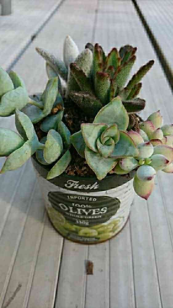 リメ缶使って寄せ植え作ってみました。