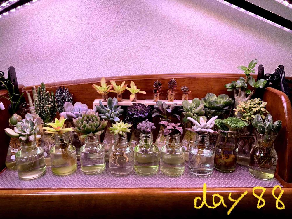 2021/2/21から自室で多肉植物の水耕栽培を始めました! フォロー大歓迎です! 自室は太陽光が一切差さないので、光は植物育成用LEDのみを使っています。 完全な初心者ですがよろしくお願いします!
