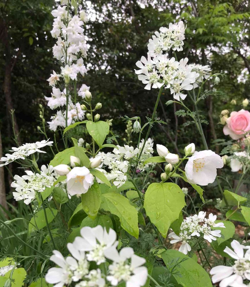 たまたまですが、この場所に多種の白花が咲き揃って、とても気に入ってます😉
