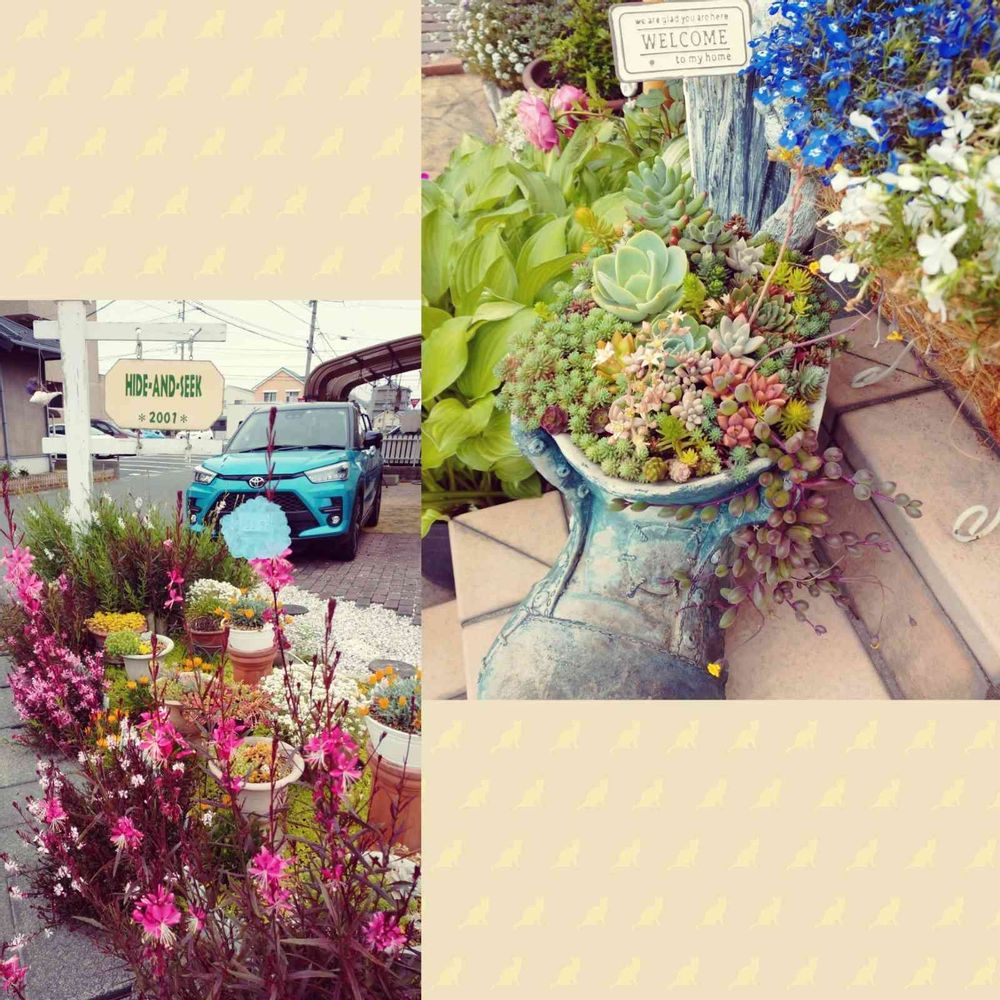 雨ざらしのポイポイブーツ鉢もいい感じに✨大好きなガウラも咲き始めた❣️