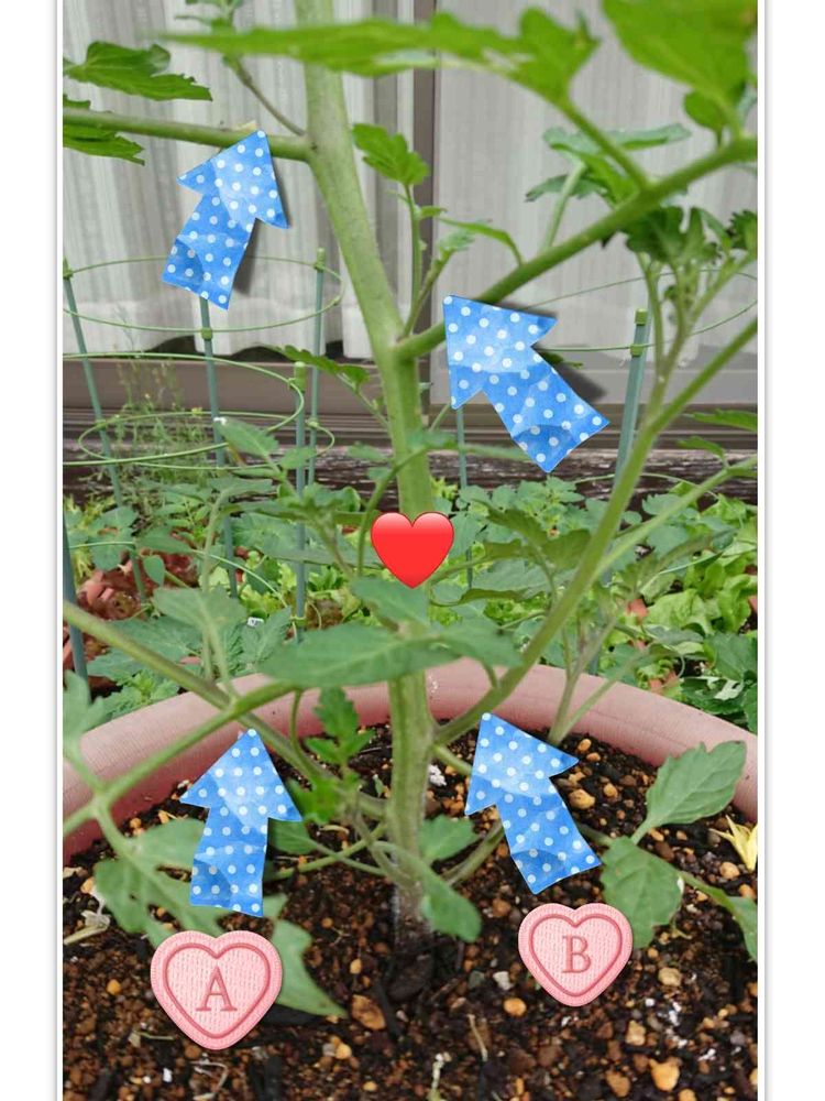 まずは上の矢印2本の芽かきをしちゃいます‼️左右⇔に揺らすようにすると取れます‼️取れにくいときは消毒済みの✂️で切っても良いです‼️