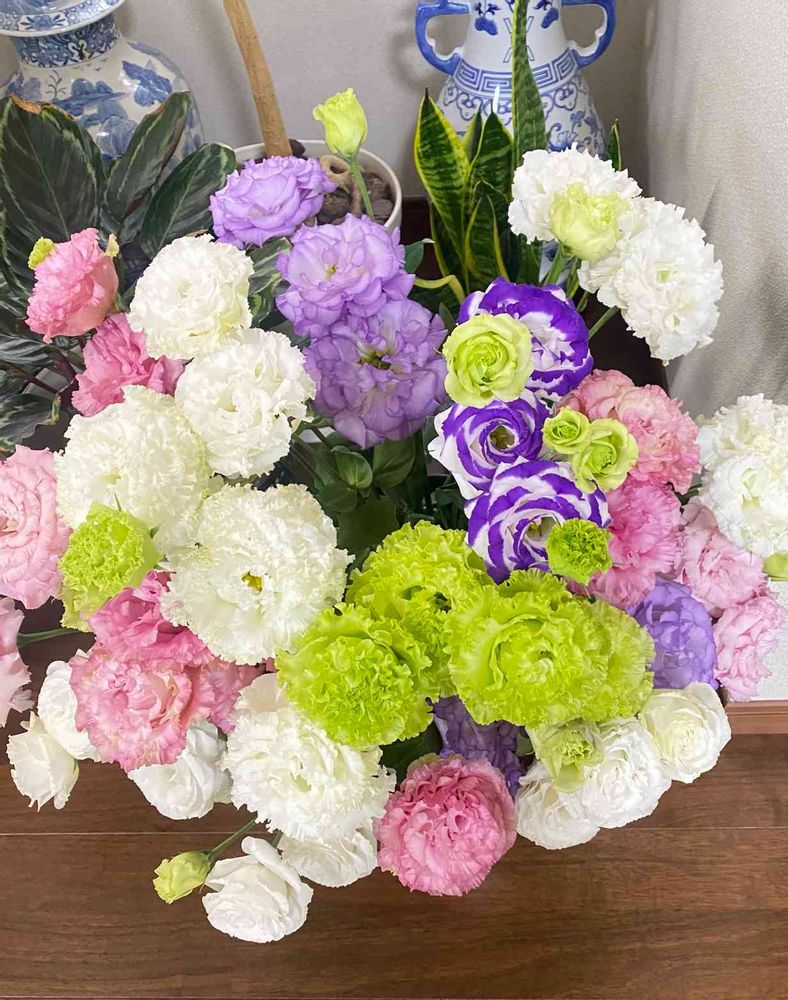 お花好きのお義姉さんが生けた、トルコ桔梗です😊このトルコ桔梗は、とても大きく
