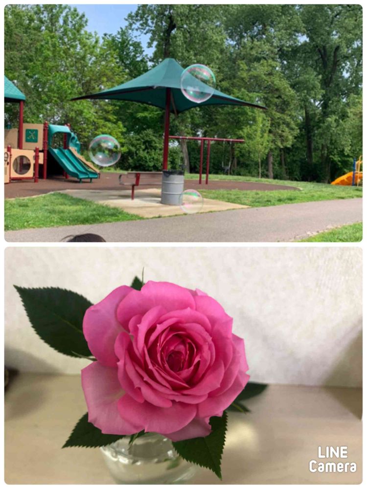 遠く離れたアメリカの地です。孫2人が公園でシャボン玉を楽しんでいる所をLINEで送ってくれました。