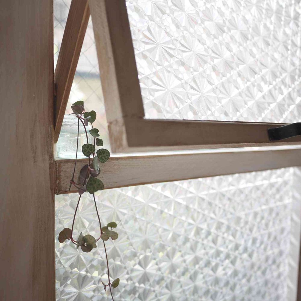 DIYした窓枠には 古い薬瓶に水差ししたハートカズラがこっそり潜んでます(⑅ ˃̶ ᵕ ˂̶⑅)