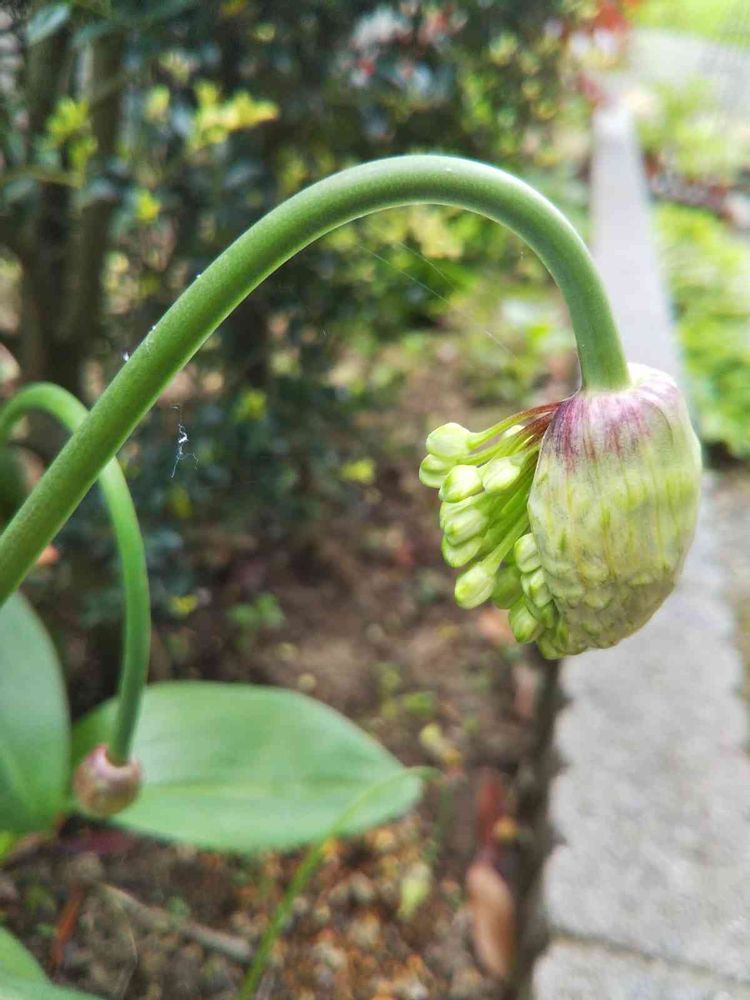 明日から天気下り坂の前に😓咲きたいな😰行者ニンニクの花❗️も〰️一歩の所まできてます。ここは風の里、明日からの天気で折れたら子孫残せません、👴様❗️これから補強します。