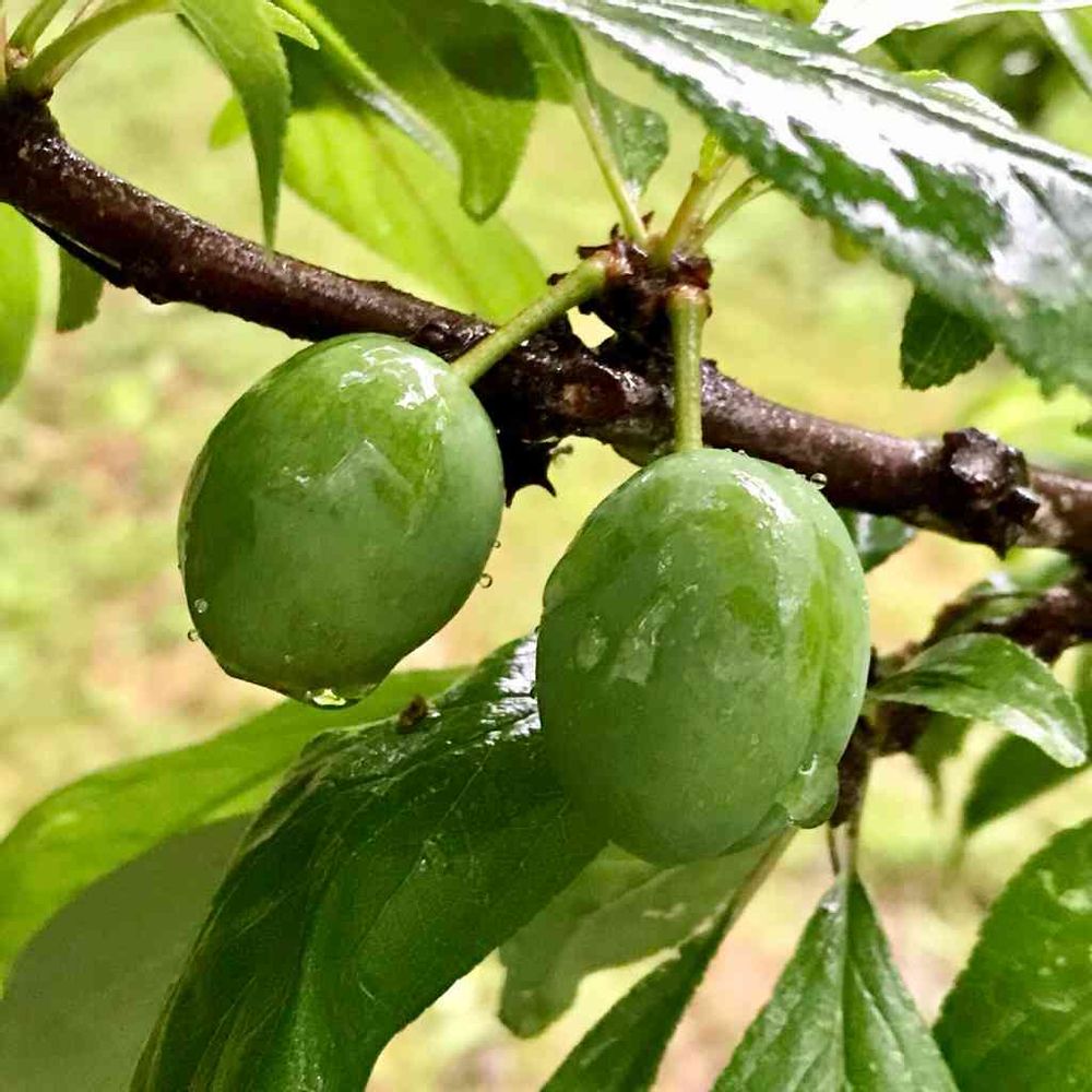 果樹園の晩生スモモも小梅サイズに。8月頃には熟すが、毎年必ず鳥獣の標的に\(//∇//)\。今年は赤いきれいな果肉を見てみたいねー💪。