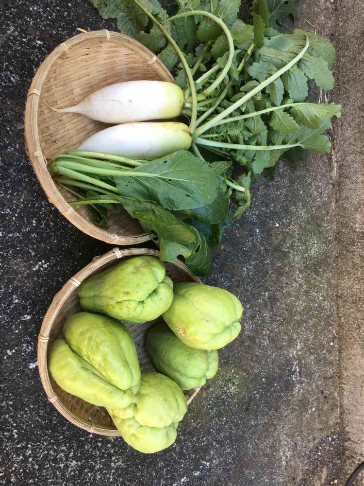 ハヤトウリ5個、ミニ大根2本、小松菜。