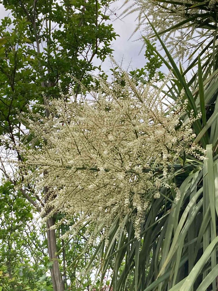 明治時代の初期にニュージーランドから日本に入って来ました。花に香りがありシュロ(棕櫚)のように茎の先端から放射状に葉を出すことから名付けられました。