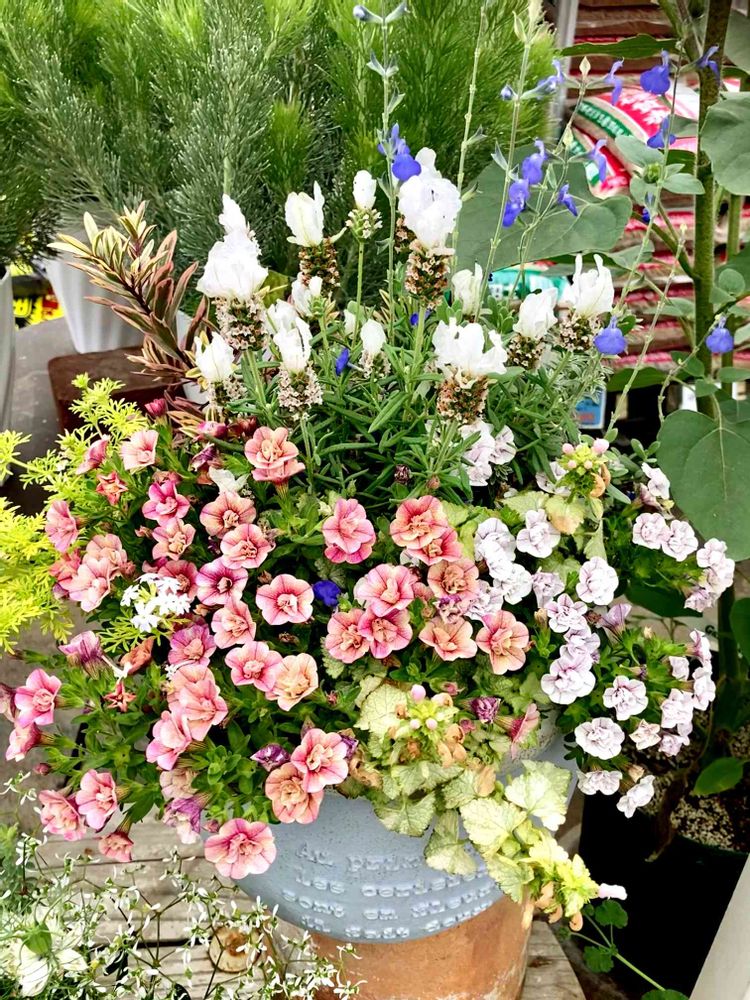 あー😅私が寄せたらこの感じかも😁(笑)ピンク💗系好きだから🎵どれもさすがに立派な寄せ植え🌼盛りだくさんにお花使ってますね✨