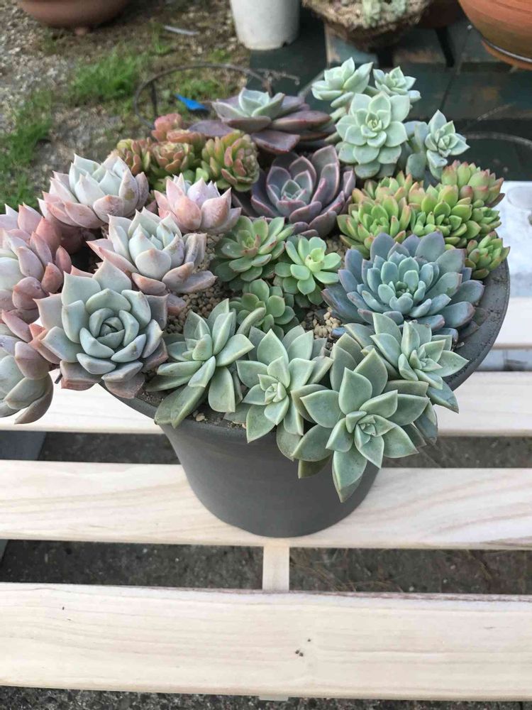 今日狩ってきた多肉達と、ストックで寄せ植え〜😋なんか平面過ぎる😅明日、時間があったら手直ししよう😃