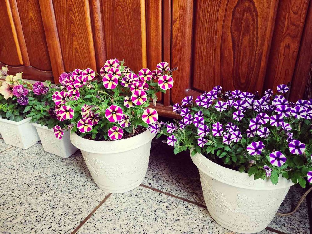 風がすごかったのでお外のペチュニアさんたちを玄関に避難しました三(((ヾ(・ω・`;)ノ