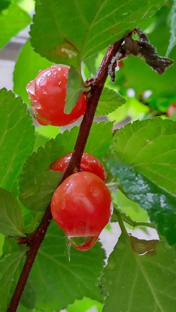 すぐ見に行ったら、うちのユスラウメはすっかり熟してまん丸ちゃんになっていたせいか雫は見られませんでした。でも今日もかわいい実じっくり見られて良かった😆😆