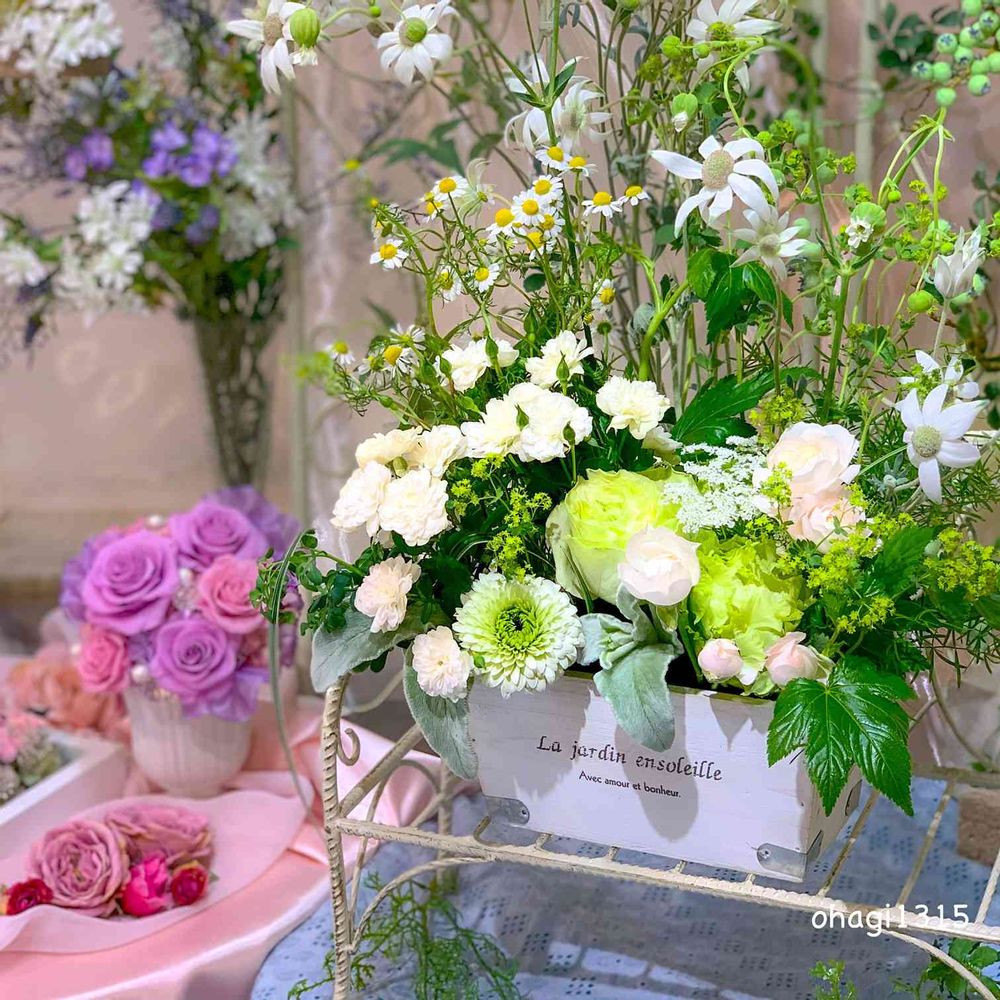 さん♪こんにちは😊どうもありがとうございます🌸初夏らしい爽やかなアレンジメントです。カモミール、可愛いですよね💕