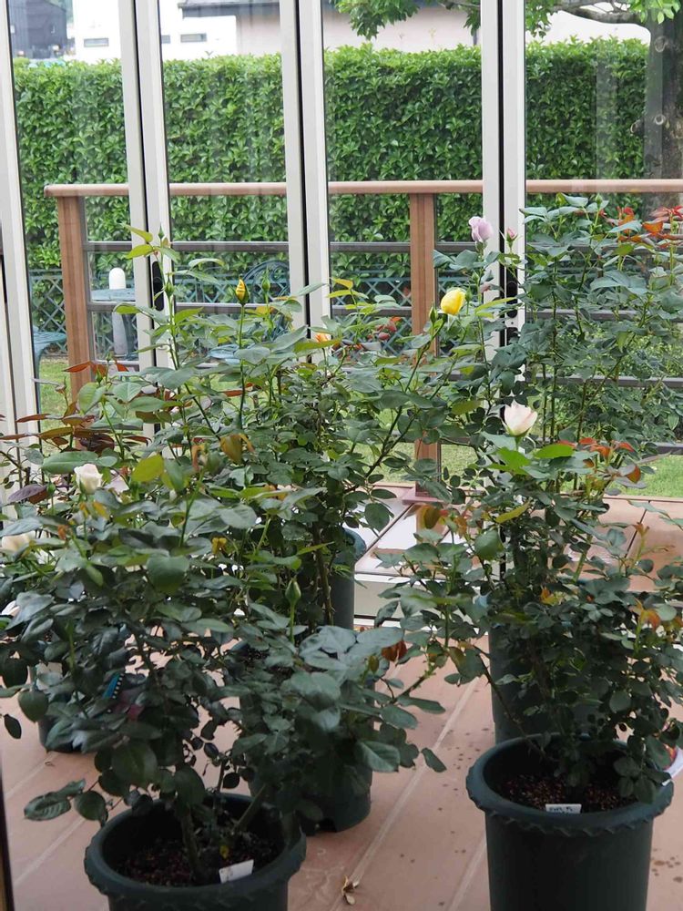 ガーデンルームに大雨から避難していた薔薇たち🌹🌹