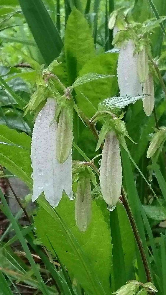 ちょっと見ない間に咲いてたホタルブクロ🌿雨に濡れて可哀想やけど雨の雫が綺麗ね✨