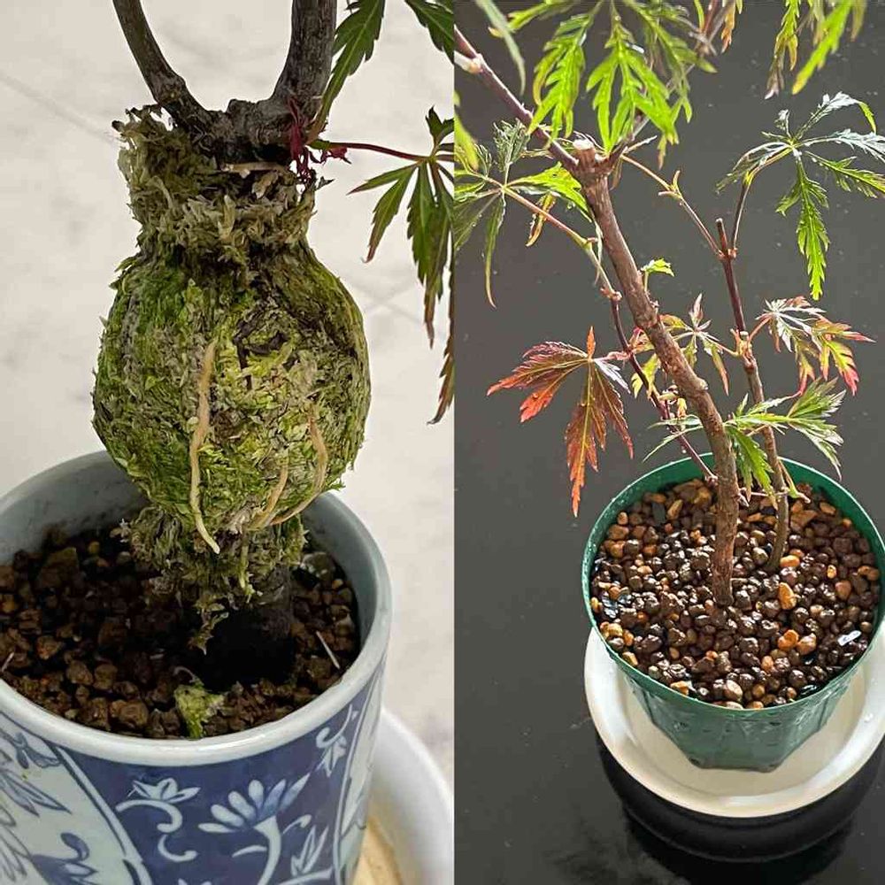 2月に 紅しだれもみじに針金結束の取り木をしてみました😃上手く発根したみたいなので植え替えました👍
