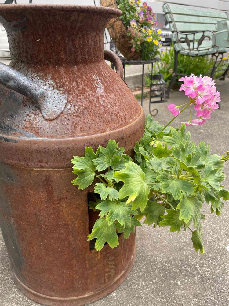 ゆうちゃんちのミルク缶が、ゼラニウムをお腹に収めた🤔