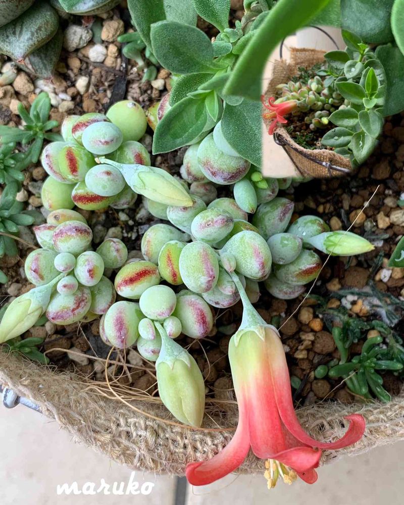 かわいい❤️❤️❤️❤️ペンデンスさん大好き😍うちは花は一回しか咲いてくれず本当にタコさんウィンナーみたいでめちゃ好き✨それにしても外は大荒れ😱風が強く台風みたいです、庭の鉢を避難してハイビスカスさんは玄関へ、かめこも玄関へ避難させました😅大嫌いな梅雨入り多肉さん心配です😢