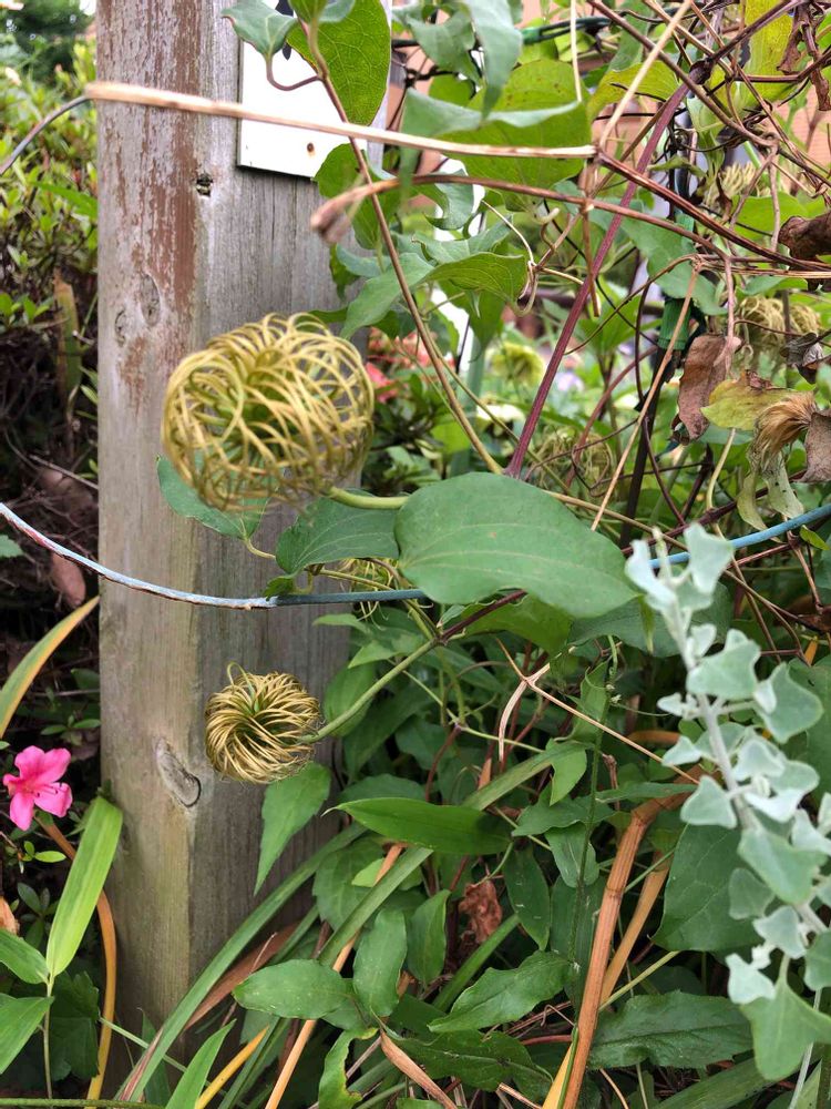 驚きました。クレマチスの花は知っていましたがその後にこんなのができるんですね。果球というんですね。面白いです!