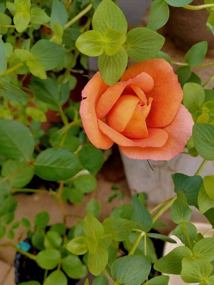 不詳のローズフォーエバーさんが咲きました~。アプリコットカラーで花に鼻を突っ込んで嗅いだら紅茶っぽい香り!これがティー香?