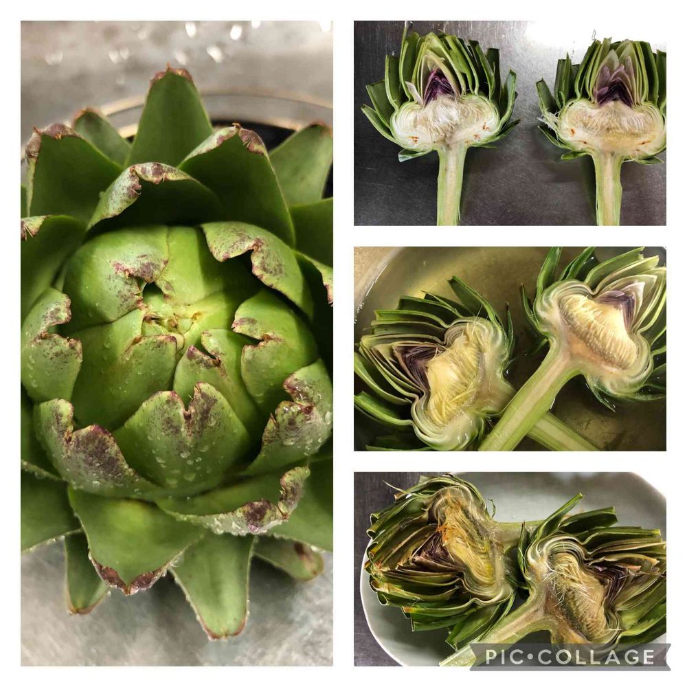 アーティーチョーク、真ん中のふわふわした毛の部分は食べられないんです😅