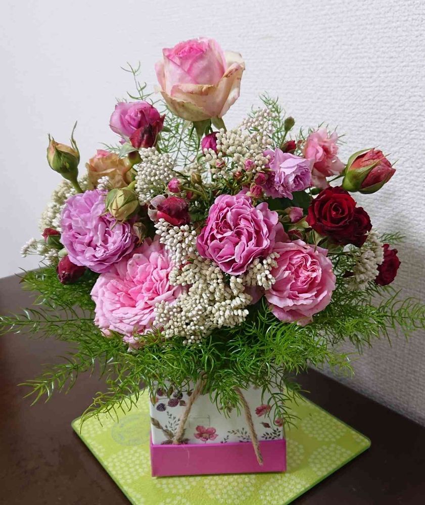 ボックスアレンジだとそのまま飾れていいですよね〜🥰ライスフラワーも効いてます👍