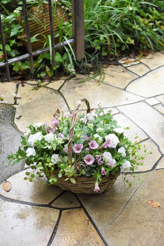 またバスケットがナチュラルで素敵だしペチュニアの色もとても素敵ですね❣
