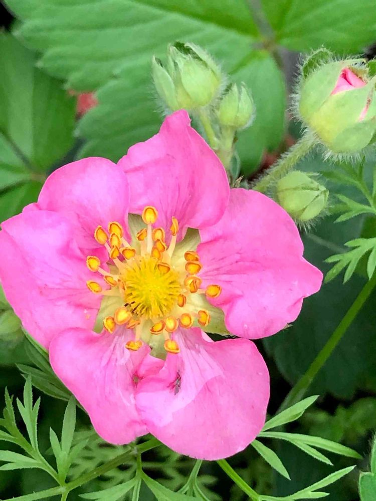 この、いちご🍓の花は、鮮やかなピンクで、食べられないような、ちっちゃないちご🍓がなるんです。
