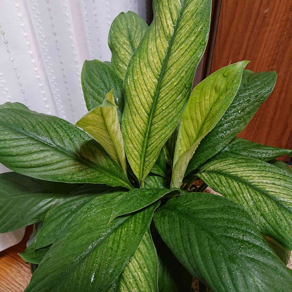 斑がなくなったかと心配したスパティフィラム、少し日の当たるところに移動させたら復活してきた!!!よかった~💕