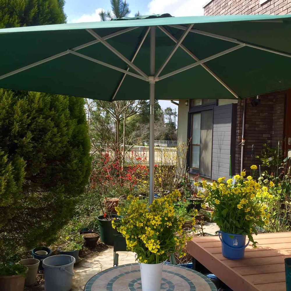 パラソル憧れますよね。うちはいつかはで今作業前のはキャンプの二三十年前のビニールのでちょっと情けない。