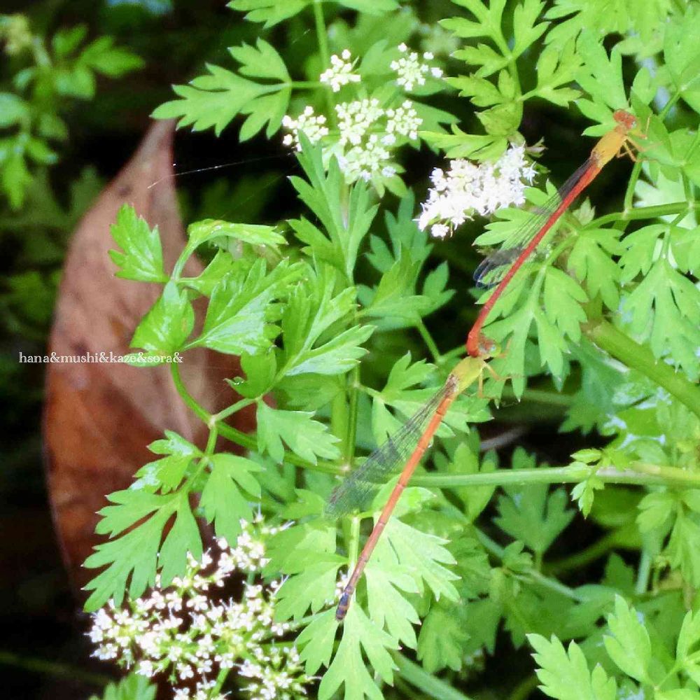 セリとベニイトトンボのカップル♡交尾中