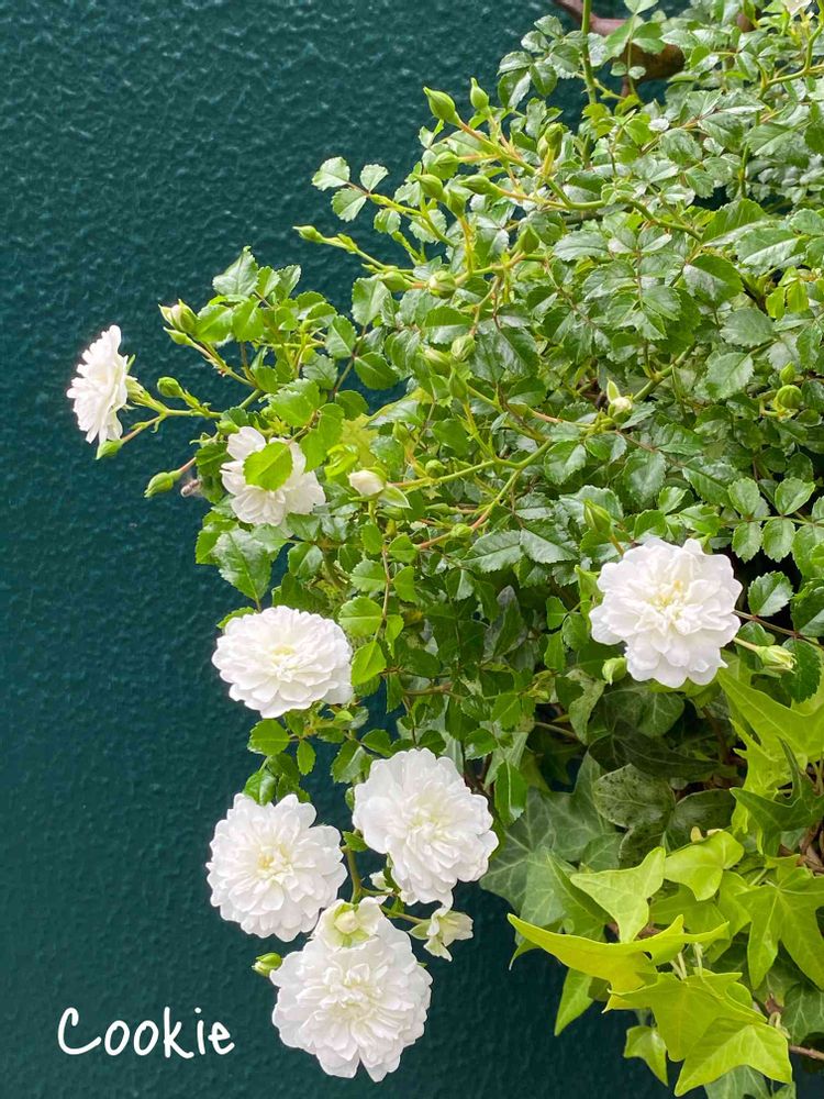 去年お迎えしたミニバラ のプチシャンテスノーシャワー が咲き始めました💕