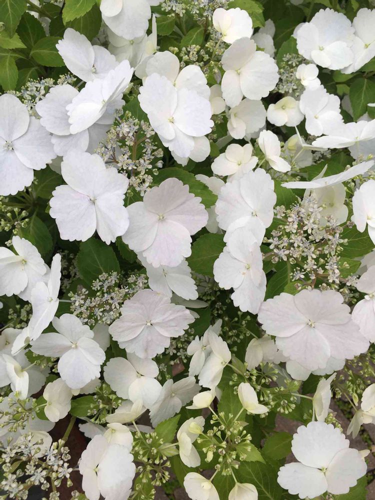 玄関前が半日陰でちょっと暗いけど白いアジサイのおかげで気持ちが明るくなります。