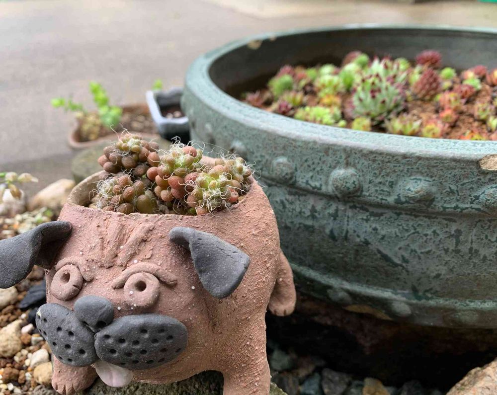 勿体なくて2年も使えずにいたジャスミンちゃんの自作鉢🐶やっと入れる物が決まった(//∇//)大好きな🍵🌂