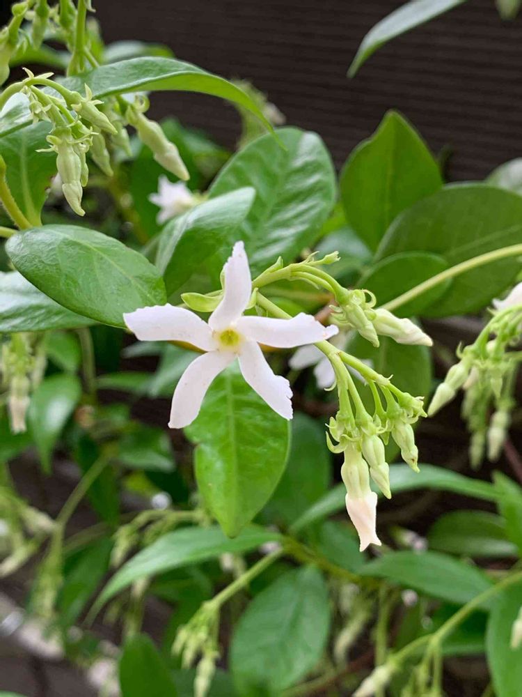良い香りが漂っています。家を囲む板塀に初雪かずらとテイカカズラを絡ませています✨
