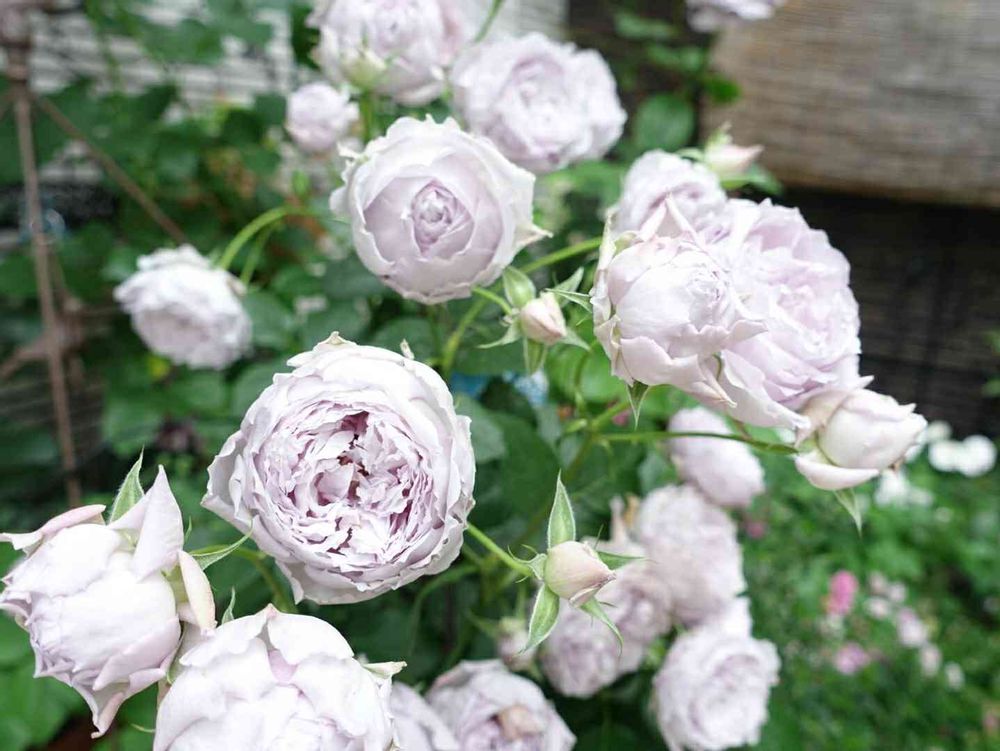 淡い紫が美しく、小さめの鉢でも育てられる場所を取らない、比較的コンパクトな薔薇