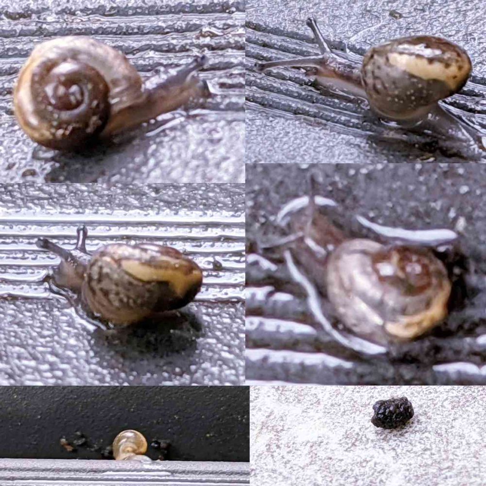 昨日、待ちに待ったカタツムリの赤ちゃん発見!!数ミリの小ささを拡大してみると7、8匹はいました。🐌