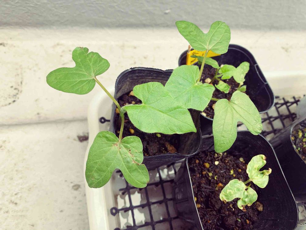 娘の幼稚園で咲いていた朝顔にタネを拾って保管していたものを蒔きました。