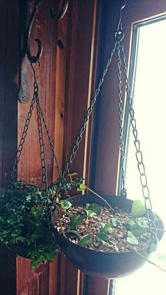 ハートヘデラをハンギングポットにも植えてみました(*´∀`)♪