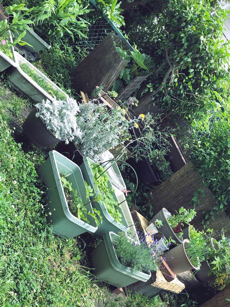 2021-5-22 (土)🌥陽がでました😃❣️ 今の庭の様子 ベランダ待機も出したいけど 風がおさまるまで辛抱💪🤨