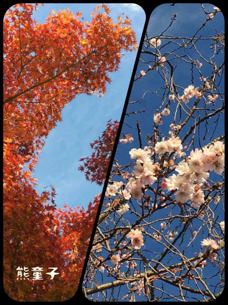 立ち寄った公園を散歩中、紅葉のとなりに十月桜が咲いているのを見つけました✨