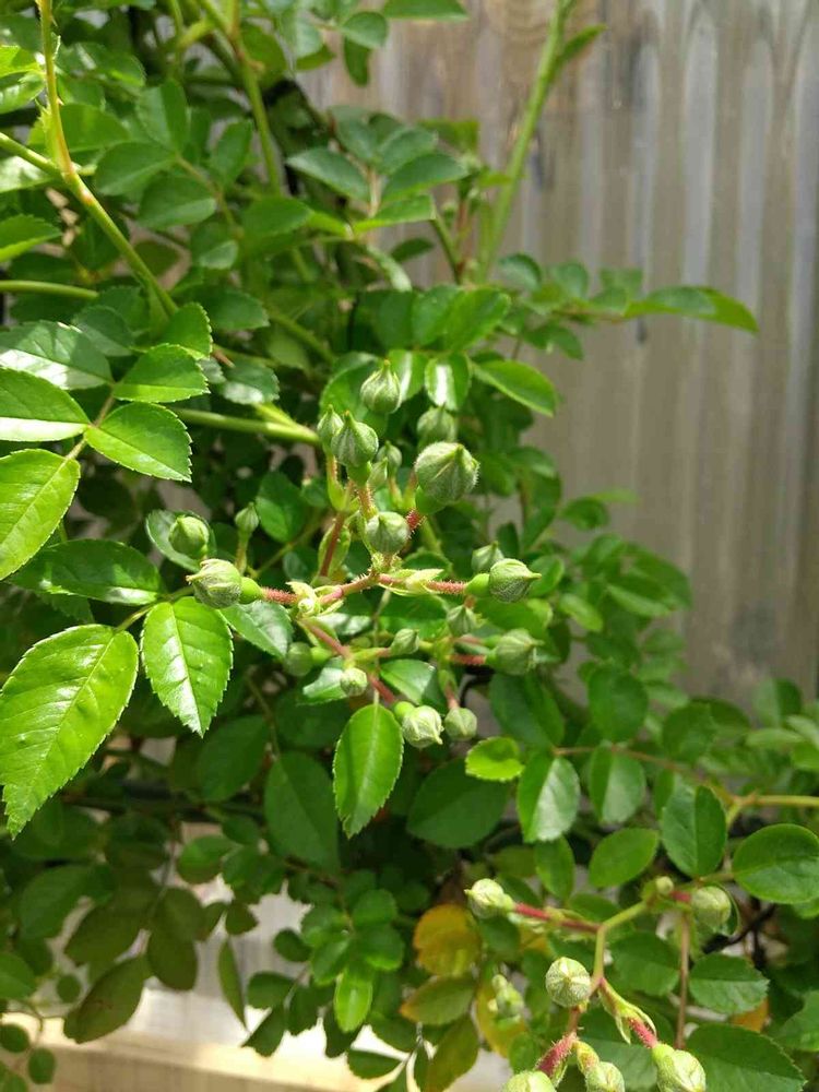 ツルバラも沢山の蕾をつけて来てくれました。今年はハート型に誘引したつもりなので結果を楽しみにしています。