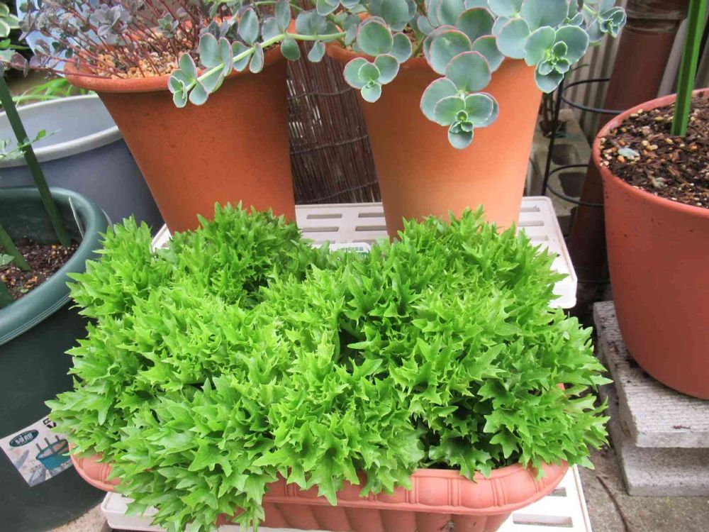 ロメインレタスと一緒に、毎年プランター栽培していますが、ワンカットレタスの方が使いがってが良いので、今年はこちらの三株にしました~🎵😉